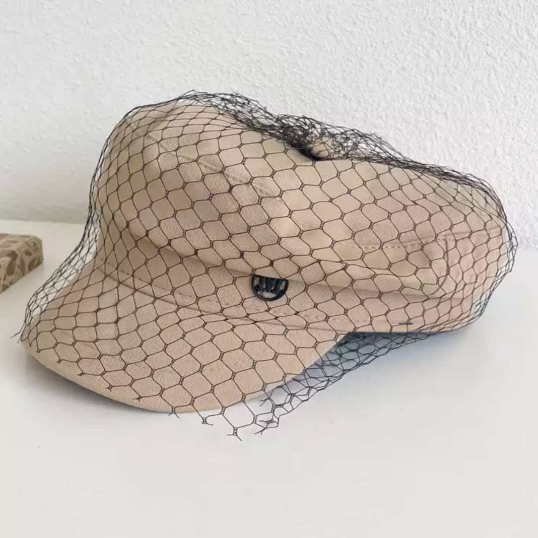 【即納】チュール付きキャスケット♡ベージュ✖️ブラックネット